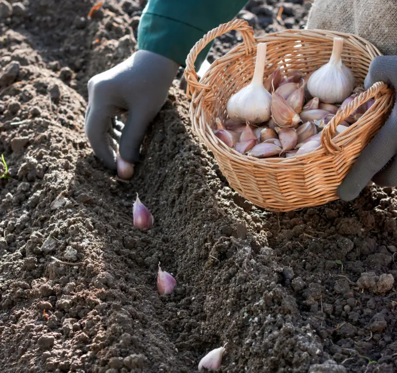 Purchase fresh clean, locally grown garlic bulbs and separate them into cloves, discarding any damaged and tiny ones. Plant cloves pointy side up in a sunny spot into rich, well-drained soil.